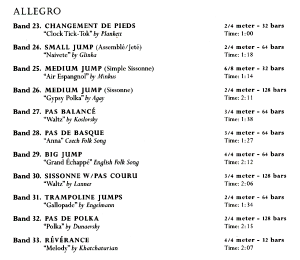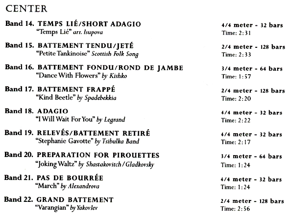 First Class! Music for the Beginner Ballet Lesson Directed by Charles Flachs and performed by Lada Isupova offers a collection of 33 different classical melodies. A couple of pieces are original melodies which sound classical in style. This CD was made for young dancers, so the music is very easy to follow and offers a great introduction to the wonders of very danceable classical music. There is music for a short and through barre followed by exercises in the center and ten tracks for allegro work. If you use each track on this CD, the kids should be well danced by the time it is finished. Comment from one of our customers: "The slow tempos on this beginner ballet CD are just what we need. Would like to see more of those, very straight-forward, strong tempos for new students ages 5-6-7." Contents
