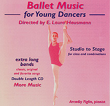 These twenty four selections of solo piano music are arranged for a complete beginning ballet class. The simple melodies of familiar, original and classical music are used to delight young students in their first years of ballet training. Arcadiy Figlin performs songs like "If I Had A Golden Mountain", "The Smile" and "Little Froggies" in a jazzy style everyone can enjoy. Each selection at the Barre is repeated and all of the combinations in the center are extra long for several groups of dancers. There are several big waltzes, mazurkas, and polka on this double length compact disc. |