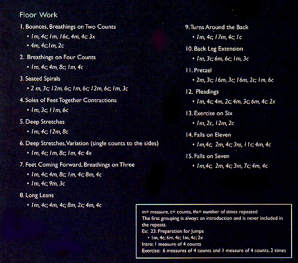 percussion music. Divided into Floor Work,